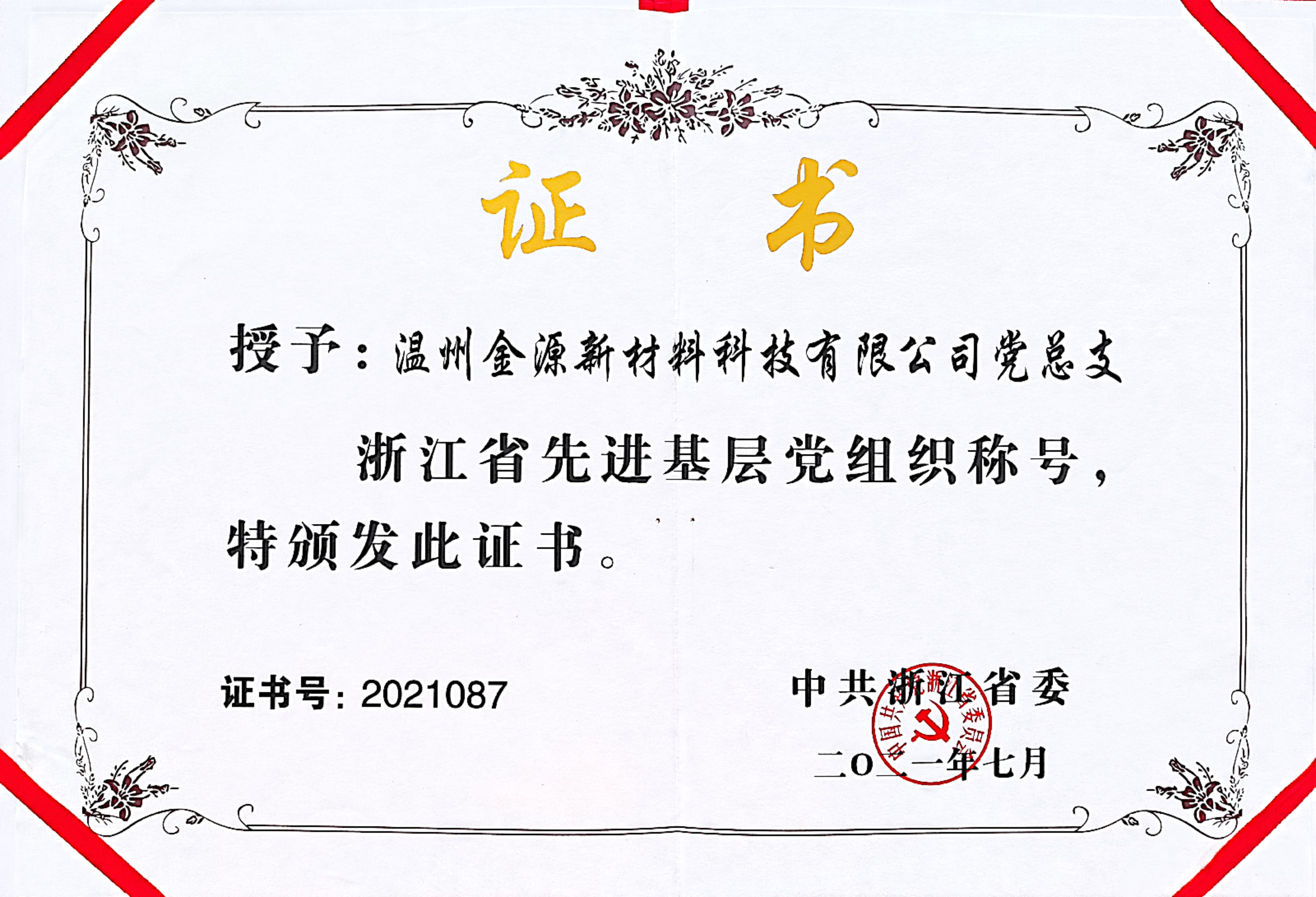 2021.07浙江省先進基層黨組織